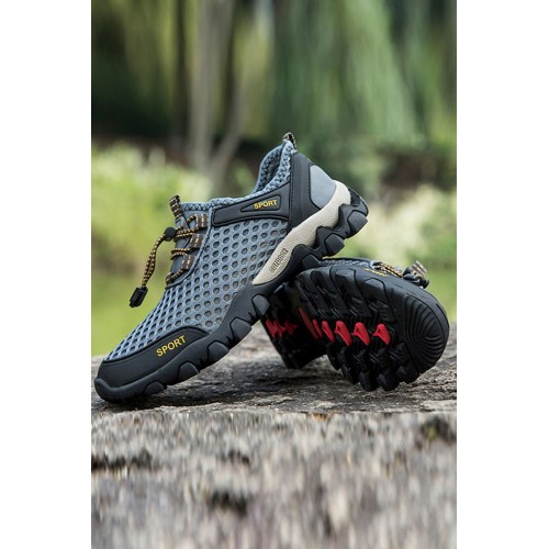 Men's Shoes - Gray Men's Outdoor Mesh Climbing Hiking Breathable Shoes