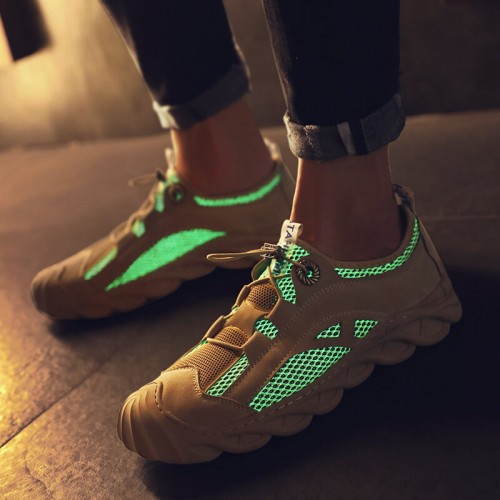 Men Outdoor Luminous Mesh Breathable Anti-collision Toe Casual Hiking Shoes