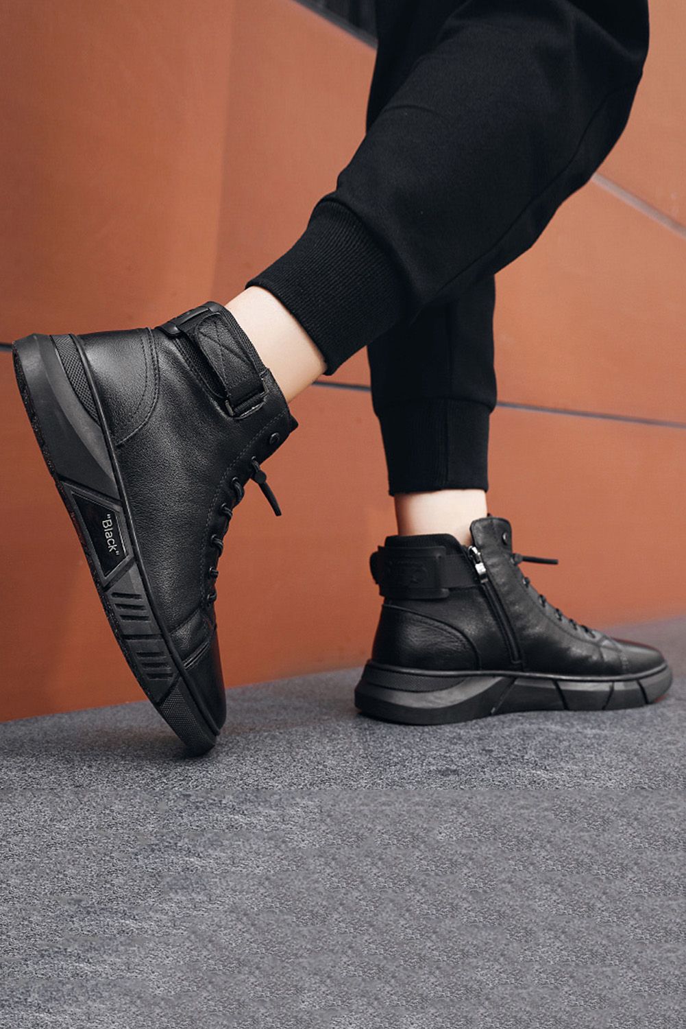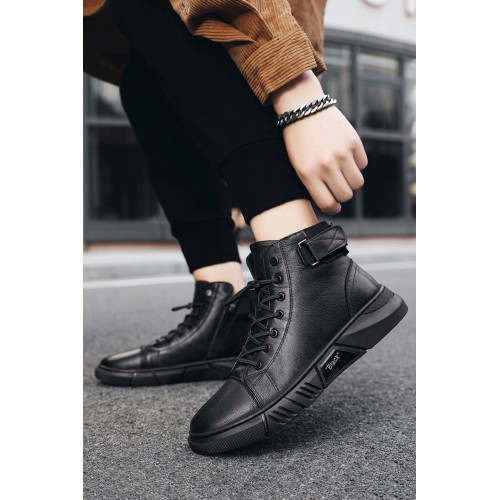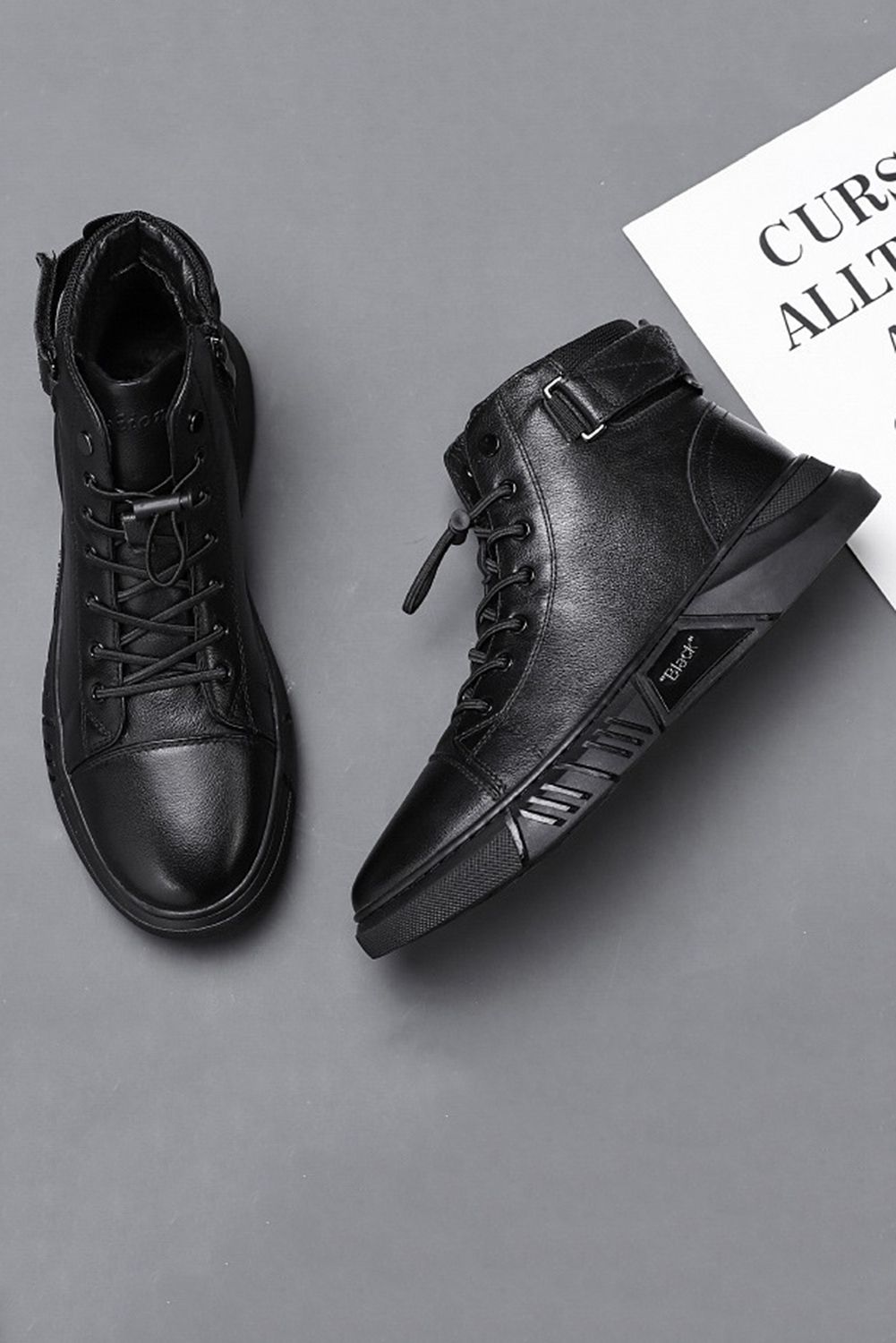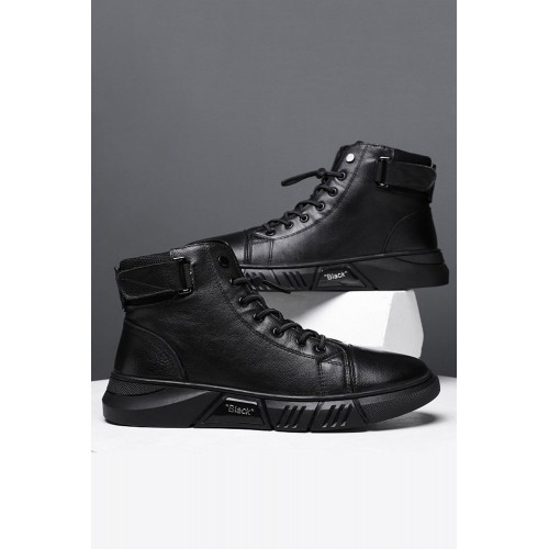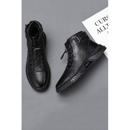 Men's Shoes - Black PU Leather Zipped Round Toe Ankle Boots