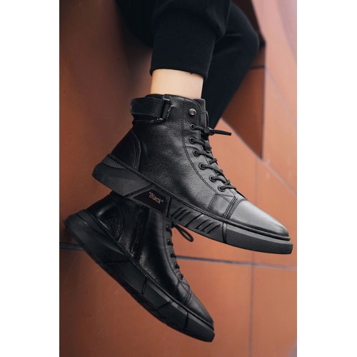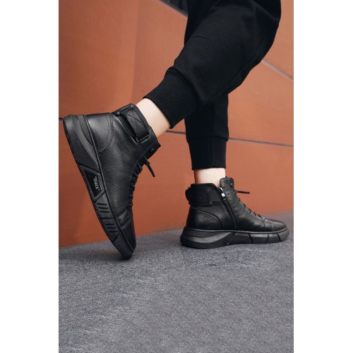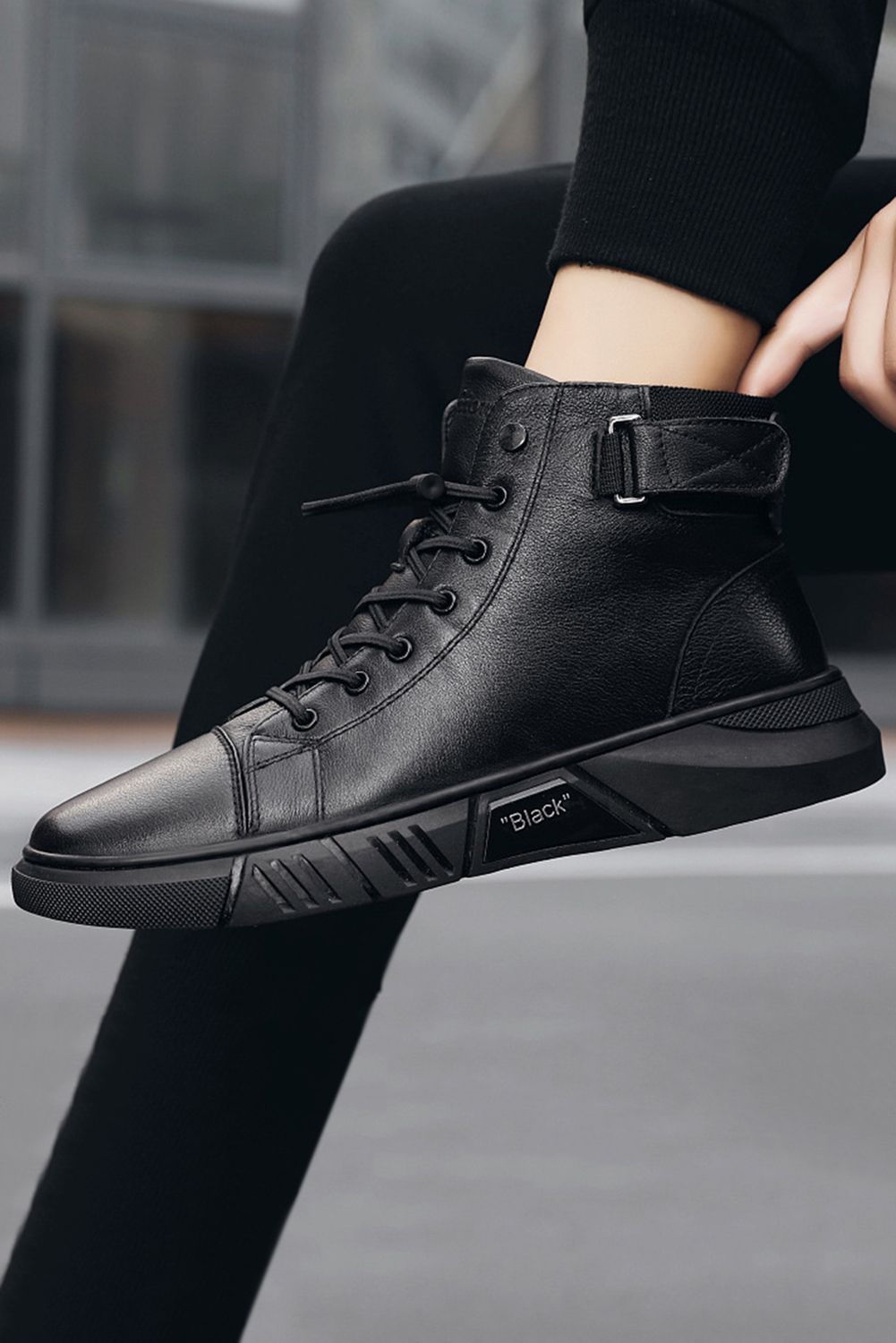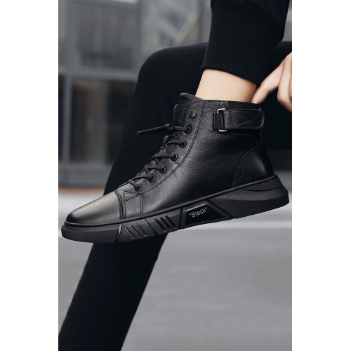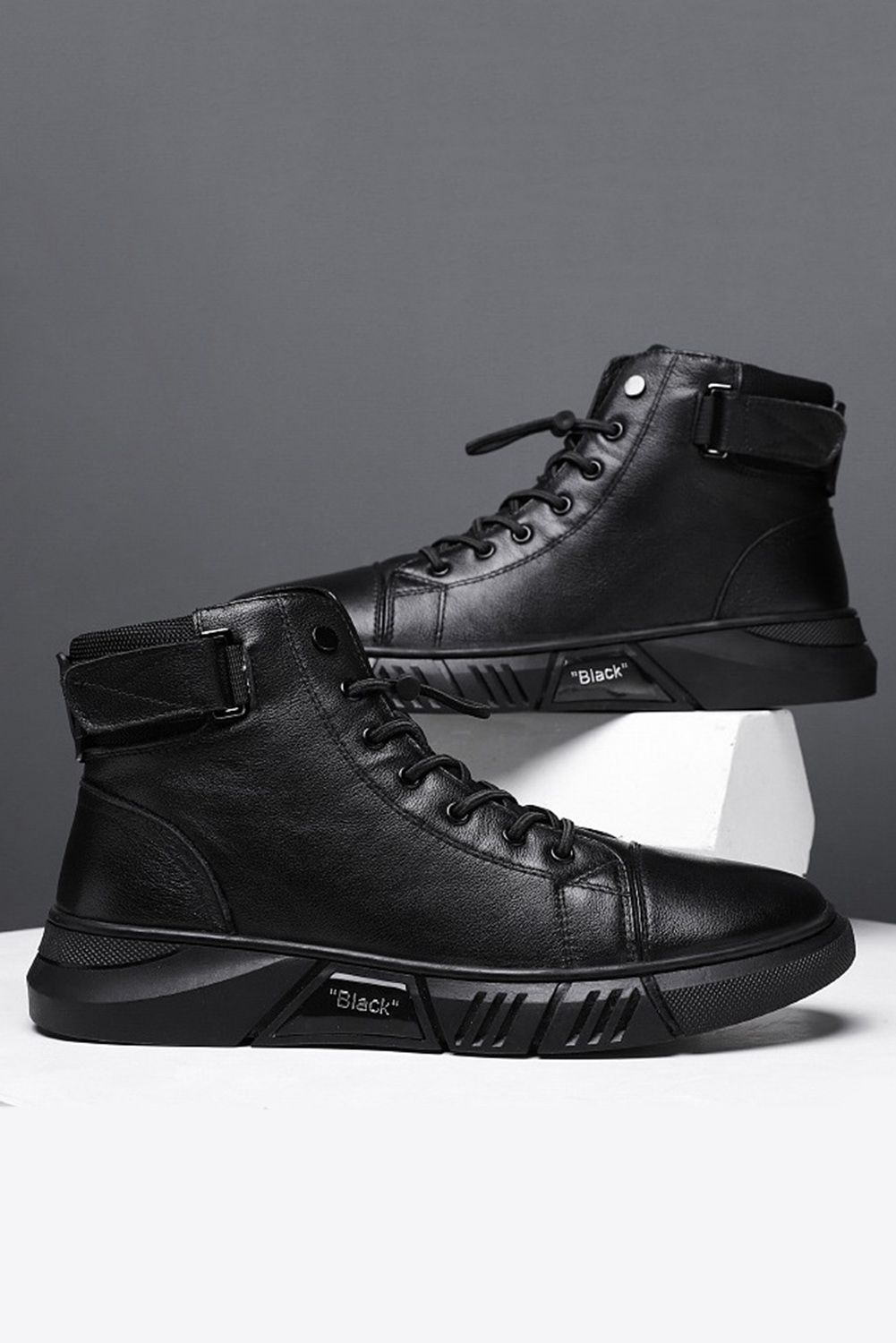 Men's Shoes - Black PU Leather Zipped Round Toe Ankle Boots