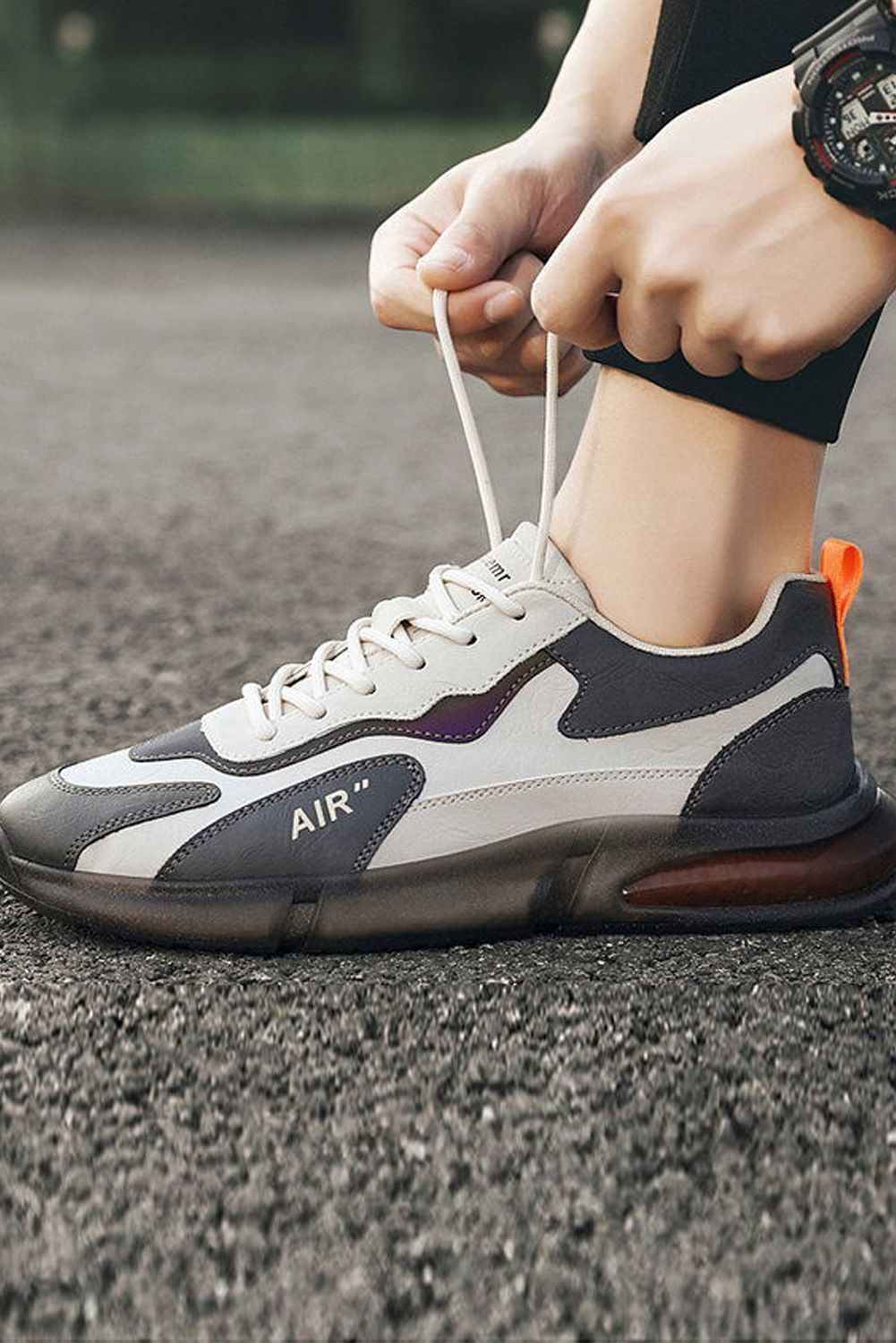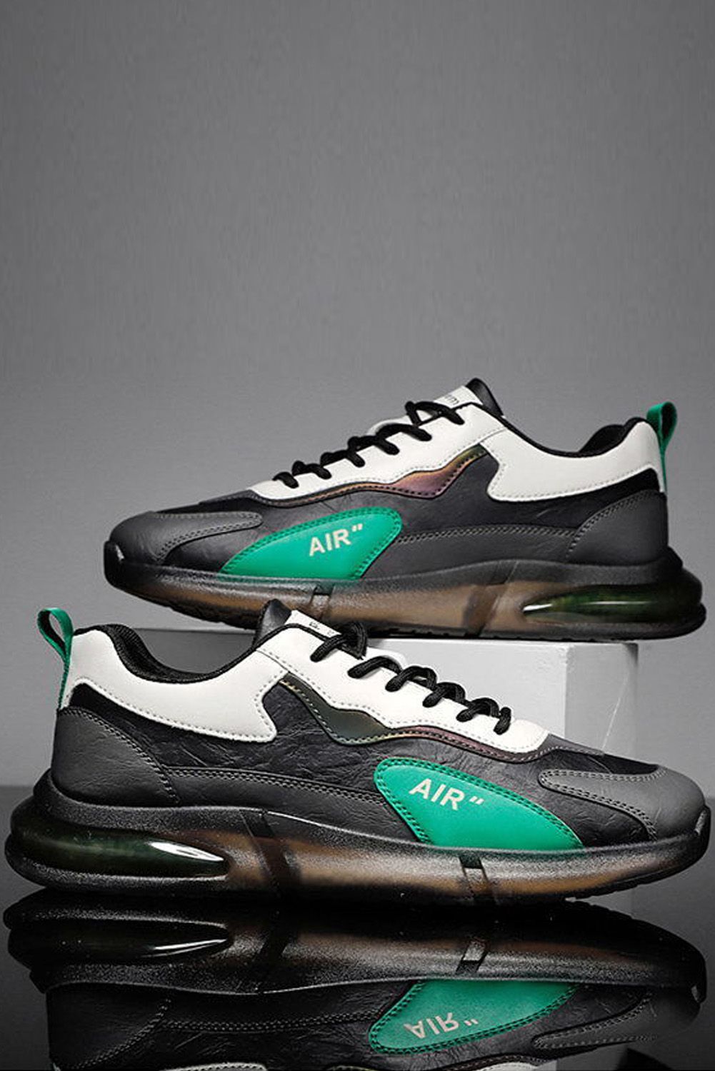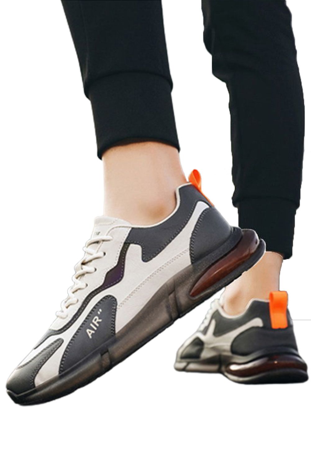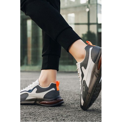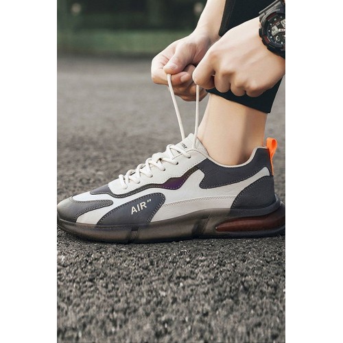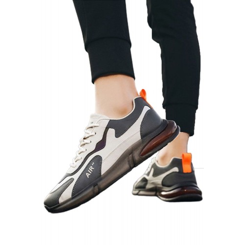 Men's Shoes - Gray Color Block Lace-up Men's Sneakers