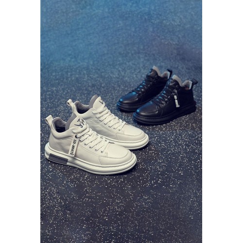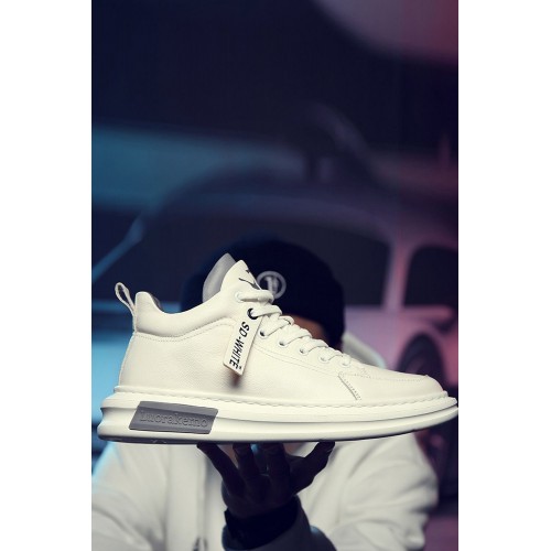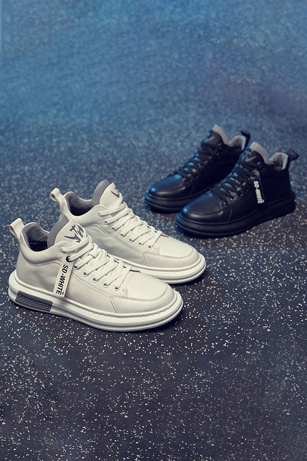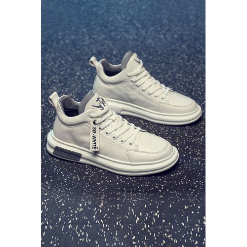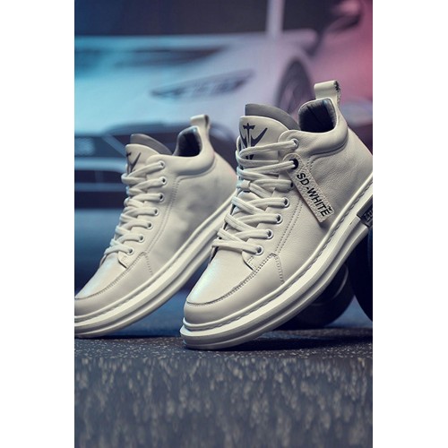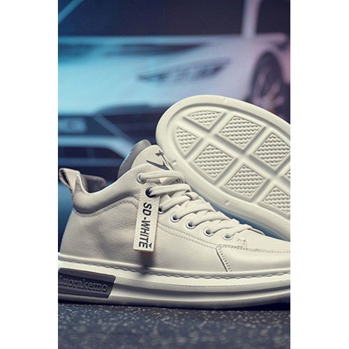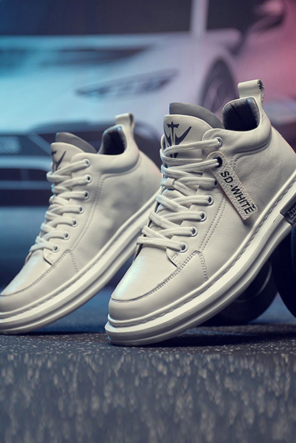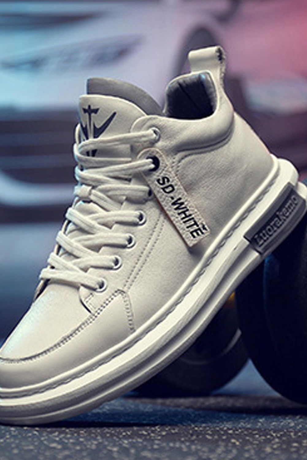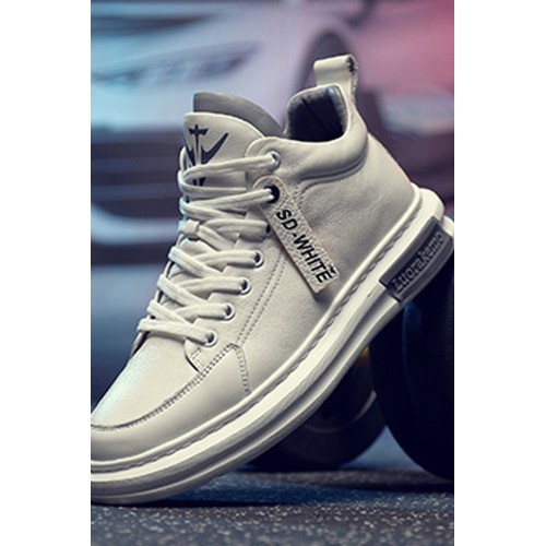 Men's Shoes - White Solid Color Lace-up Round Toe Men's Sports Shoes