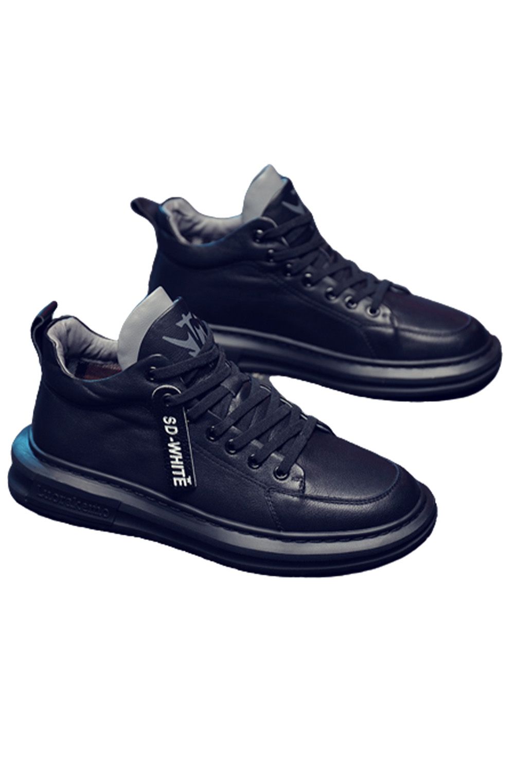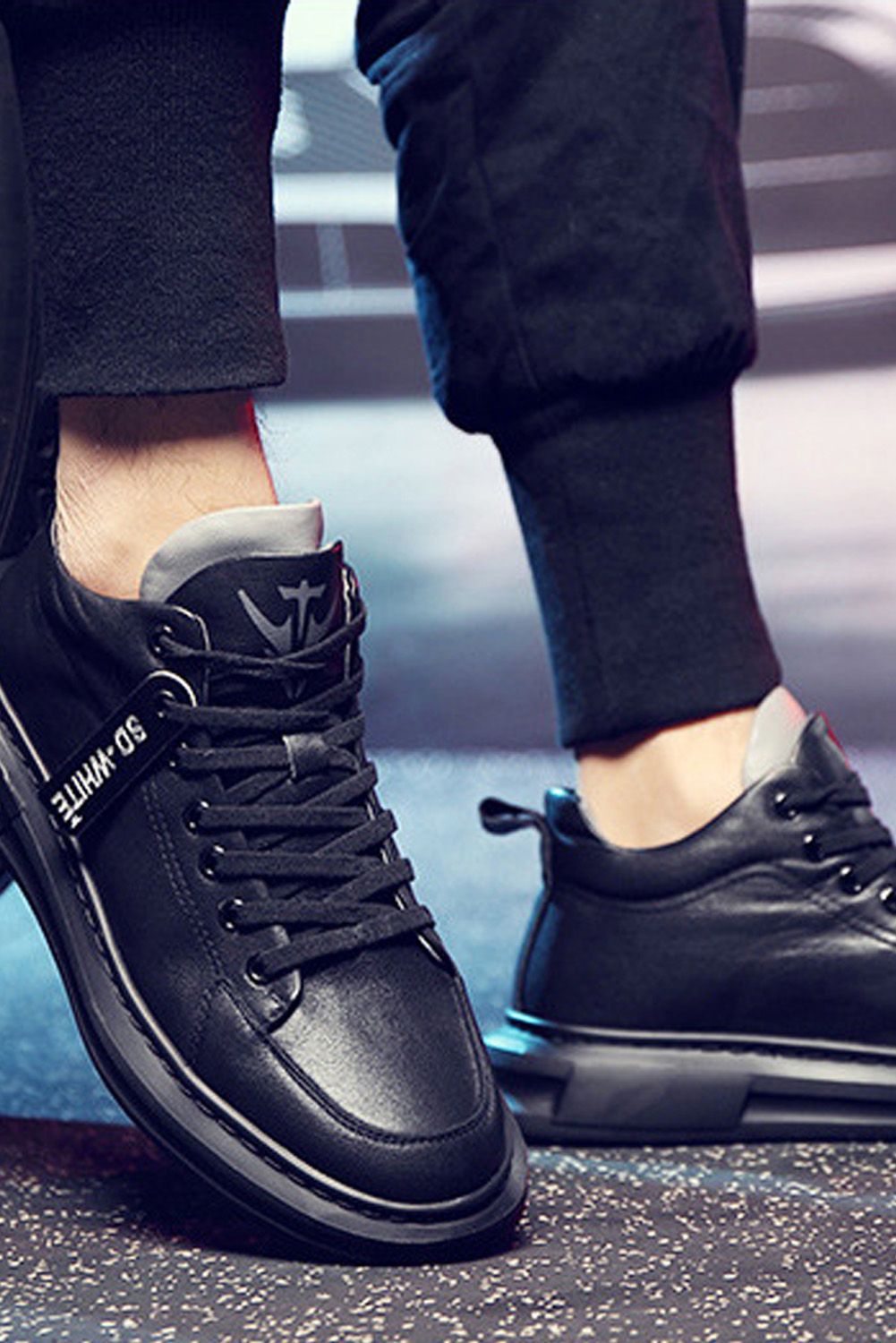 Solid Color Lace-up Round Toe Men's Sports Shoes