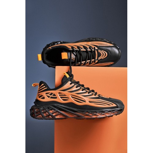 Men's Shoes - Orange Men's Lace up Sports Running Basketball Shoes