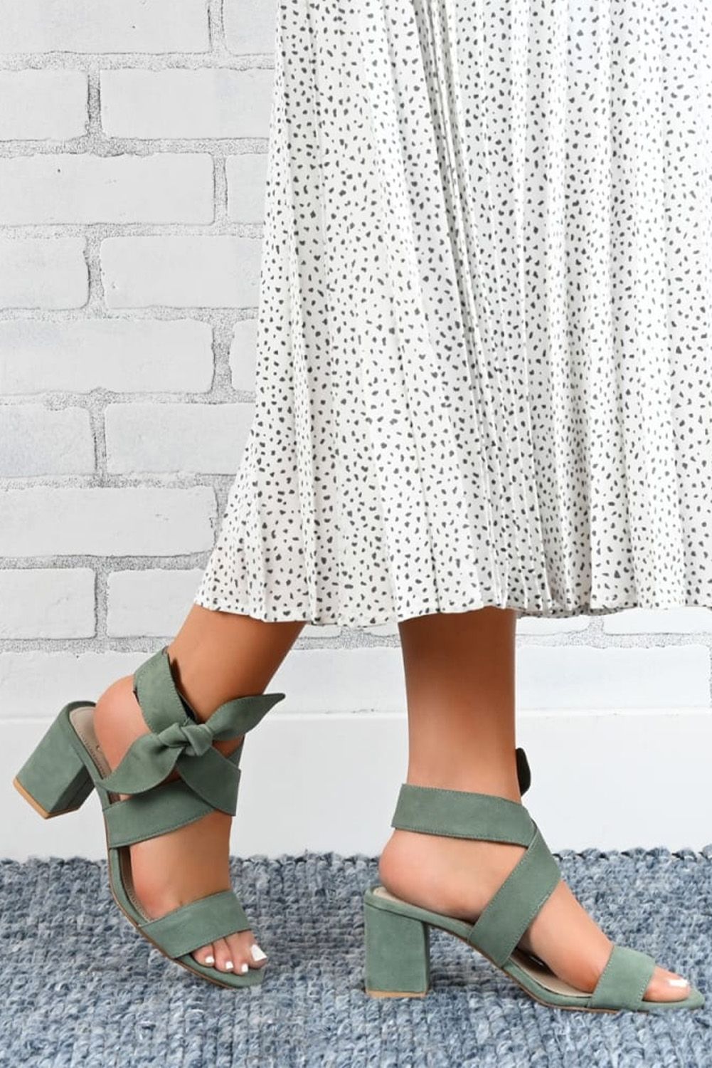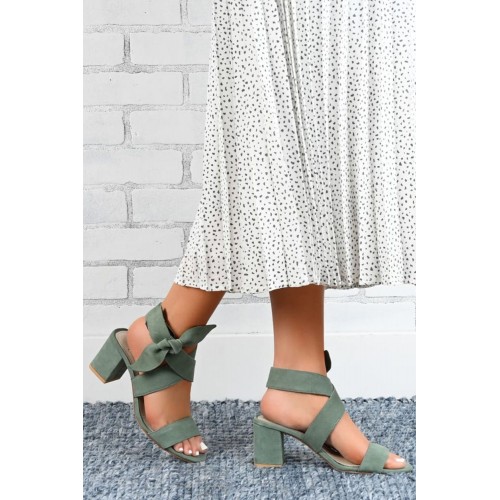 Open Toe Bowknot Ankle Strap High Chunky Heel Sandals