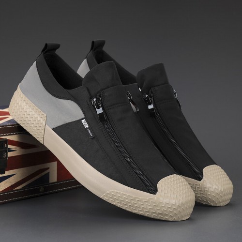 Men Colorblock Comfy Breathable Zipper Casual Canvas Sneakers