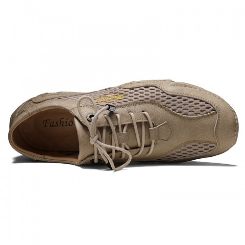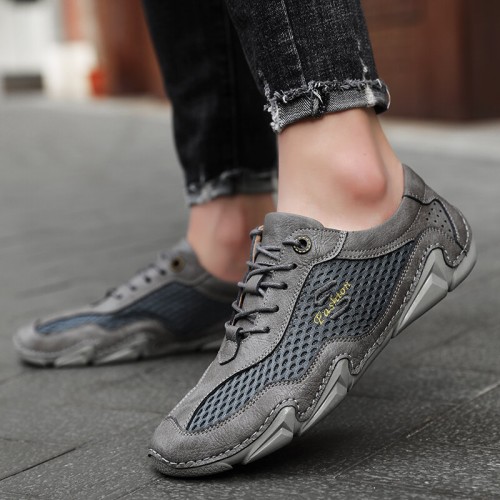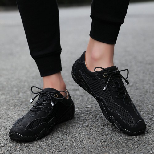 Men Mesh Breathable Non Slip Comfy Lace Up Elastic Band Casual Shoes