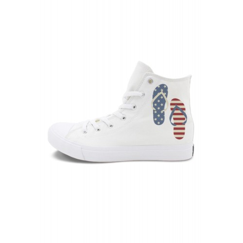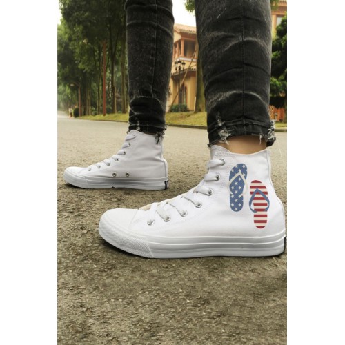 Men's Shoes - White American Flag Graphic Print High Top Canvas Shoes