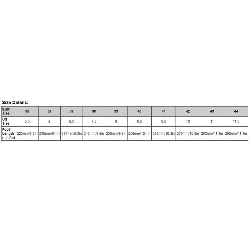 EUR Size | 35 | 36 | 37 | 38 | 39 | 40 | 41 | 42 | 43 | 44 |