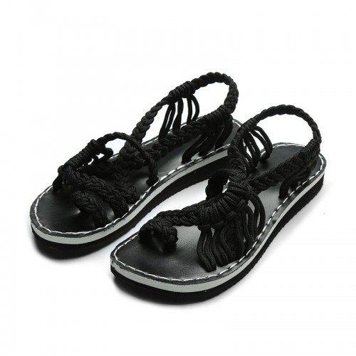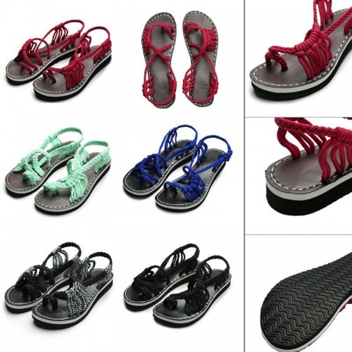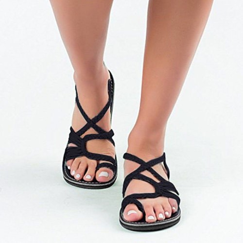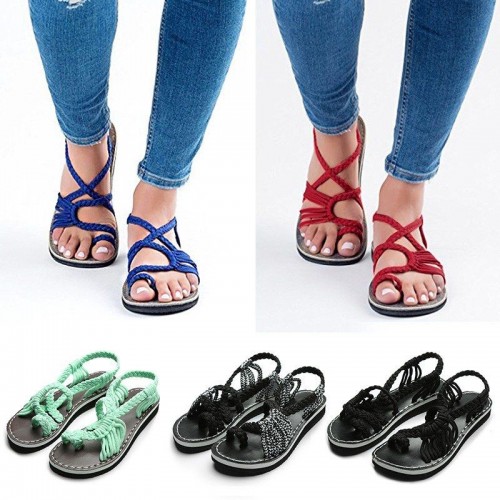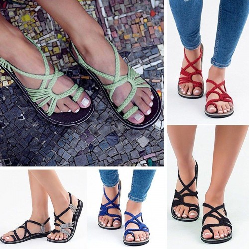 Slip into these Rome style flat sandals to your daily ensemble. Its crossed weaving ropes bring a stylish and vintage feeling, which will never disappoint you!