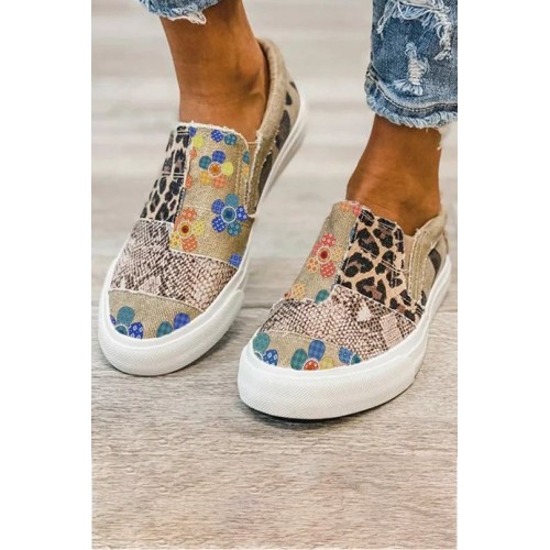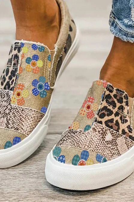 Women's Shoes - Animal Floral Print Splicing Cloth Shoes Sneakers