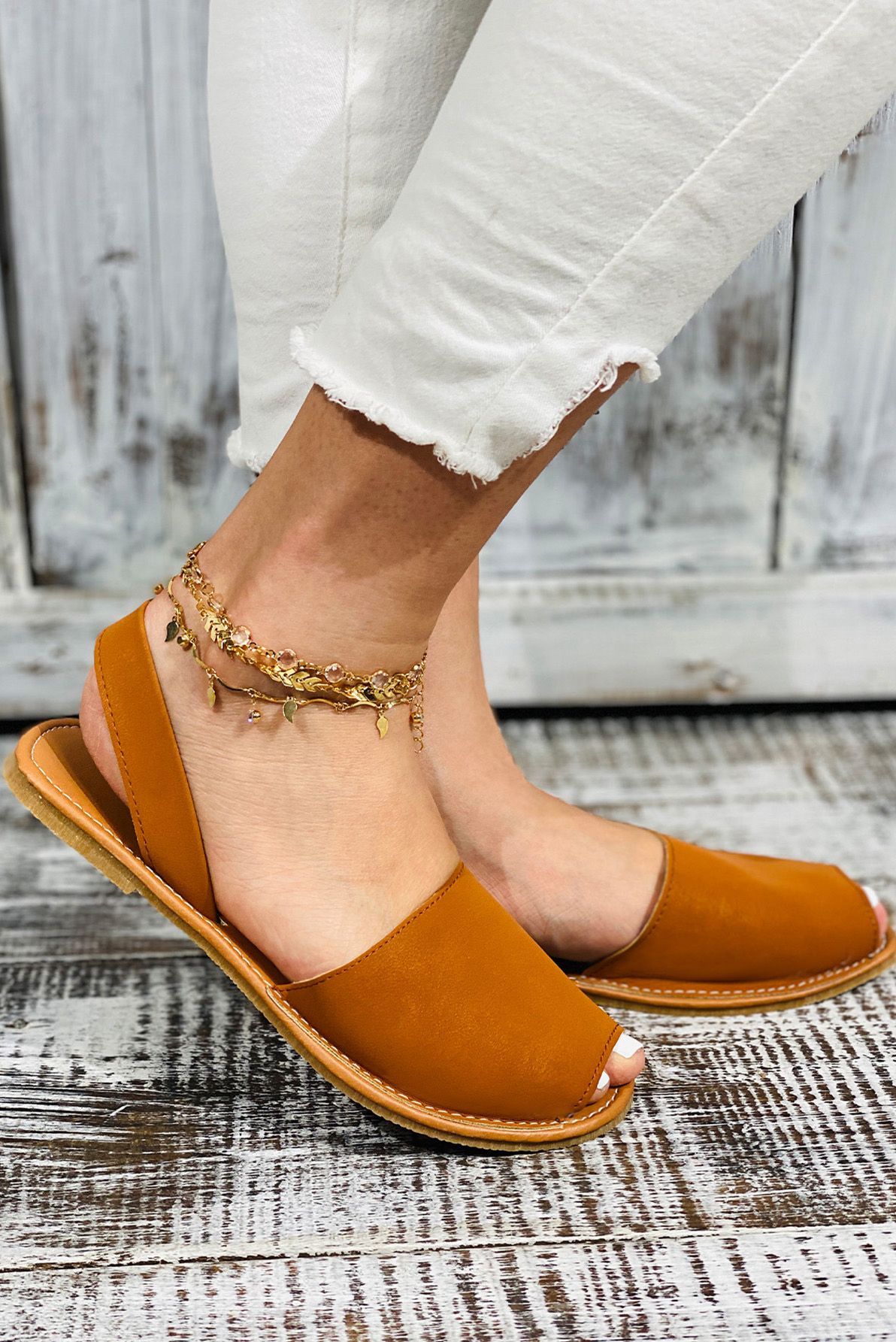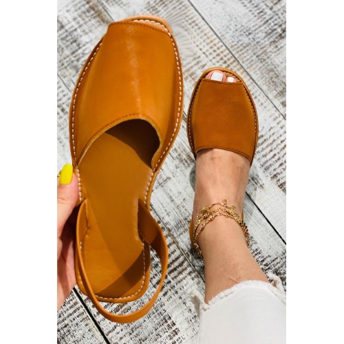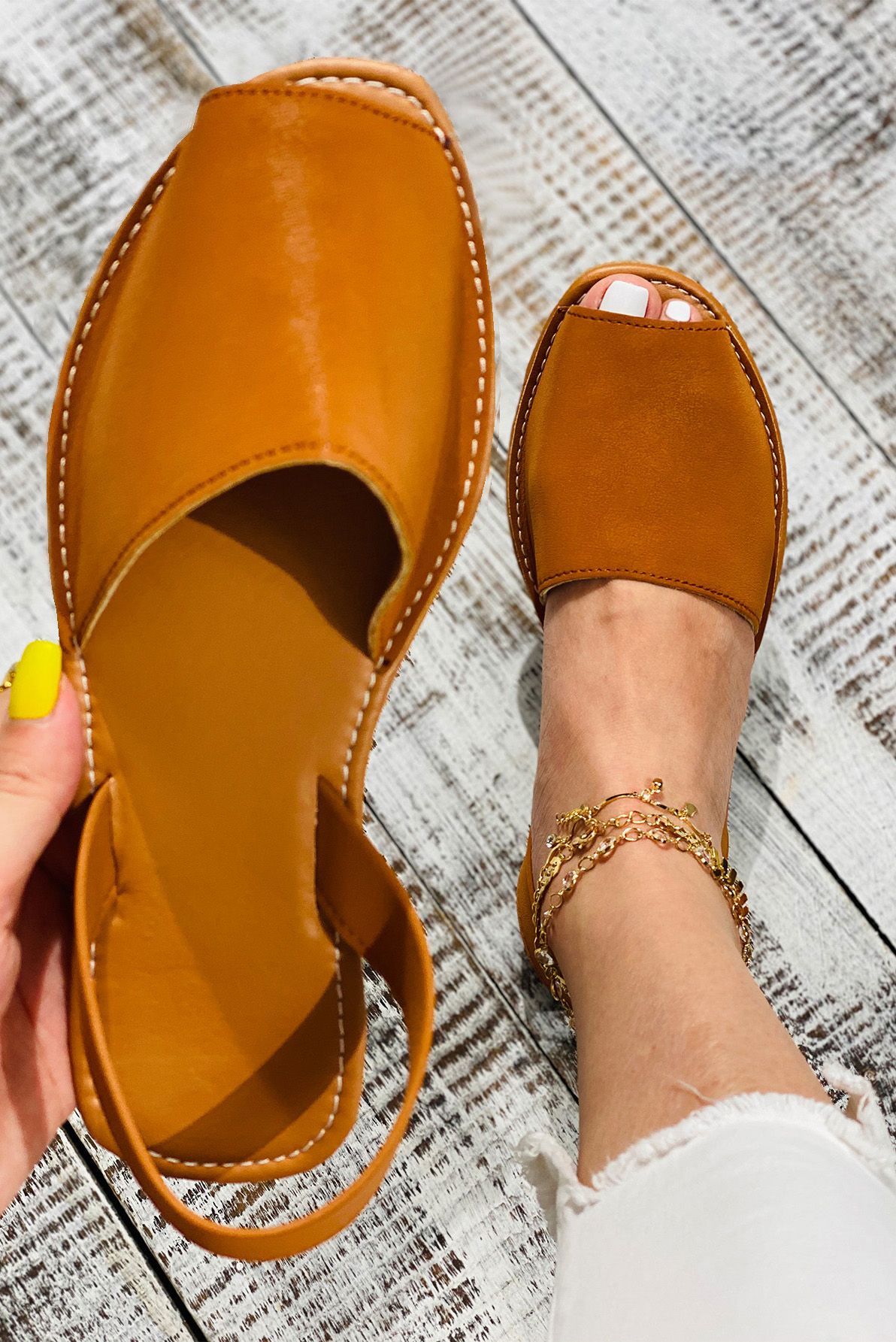 Women's Shoes - Brown Fish Mouth Artificial PU Low-cut Back Strap Ladies Shoes