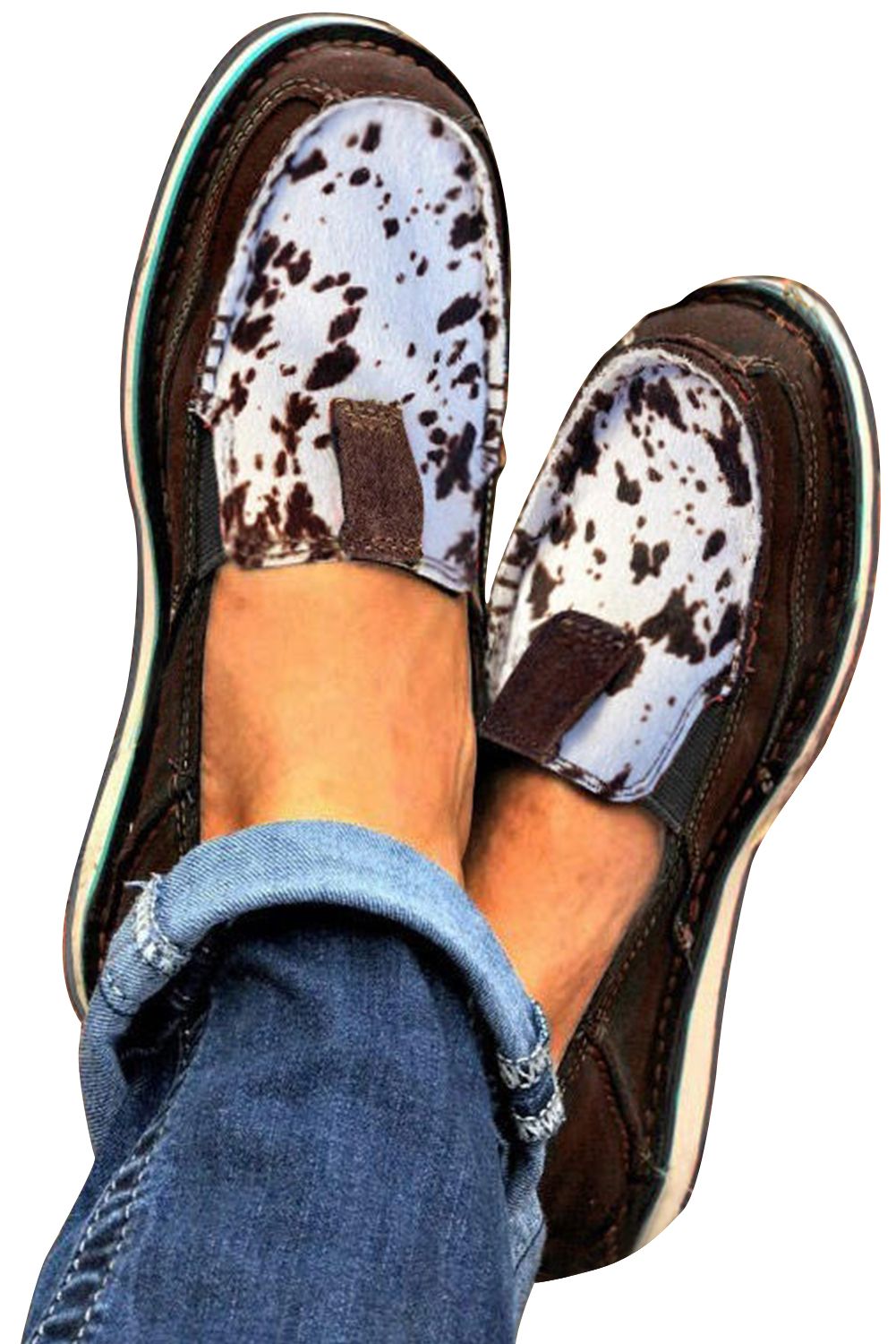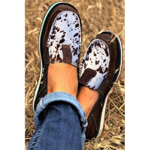 Cow Slip On Round Toe Flat Sneakers