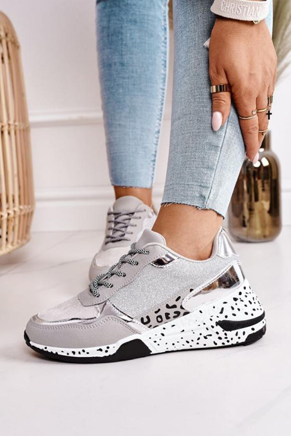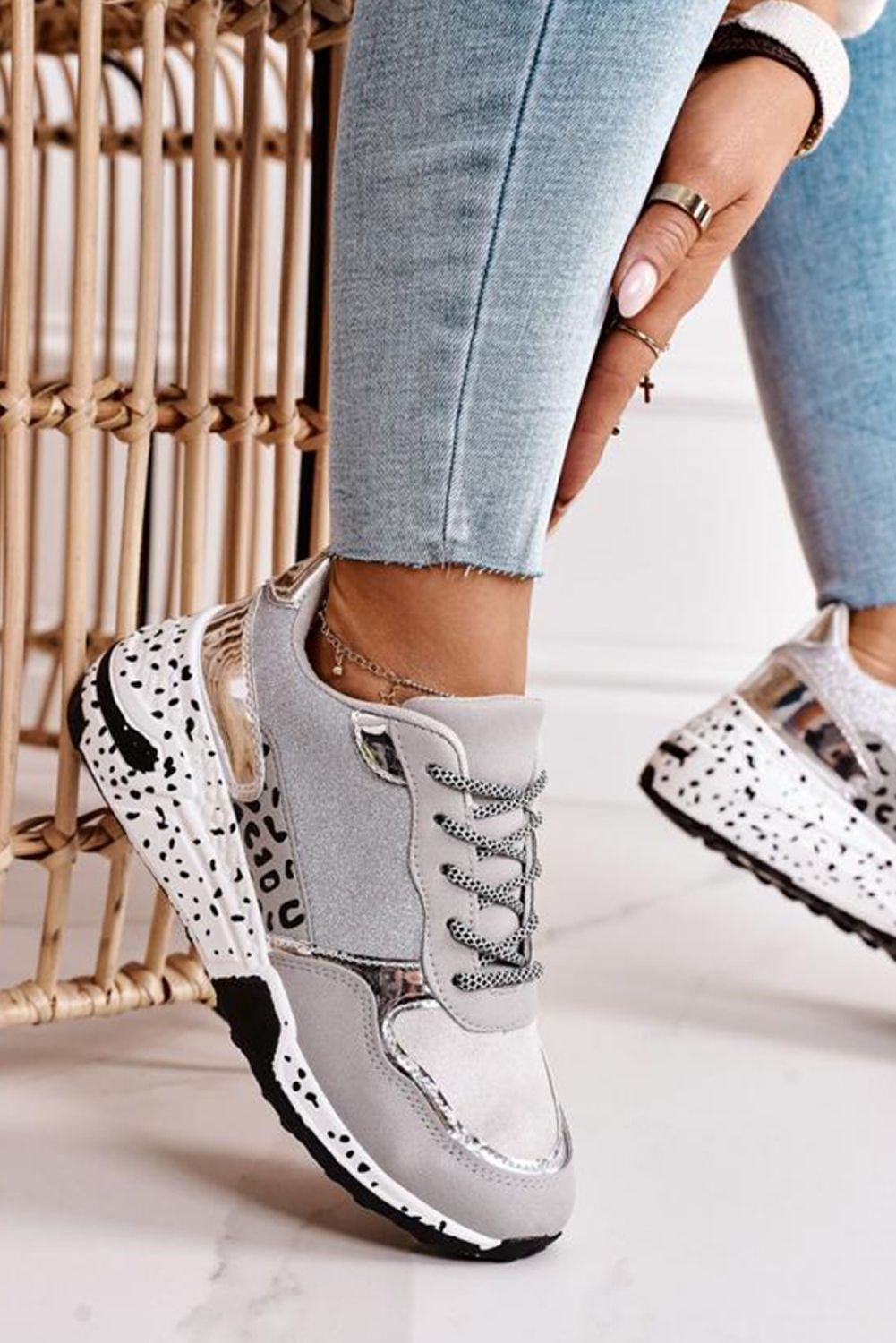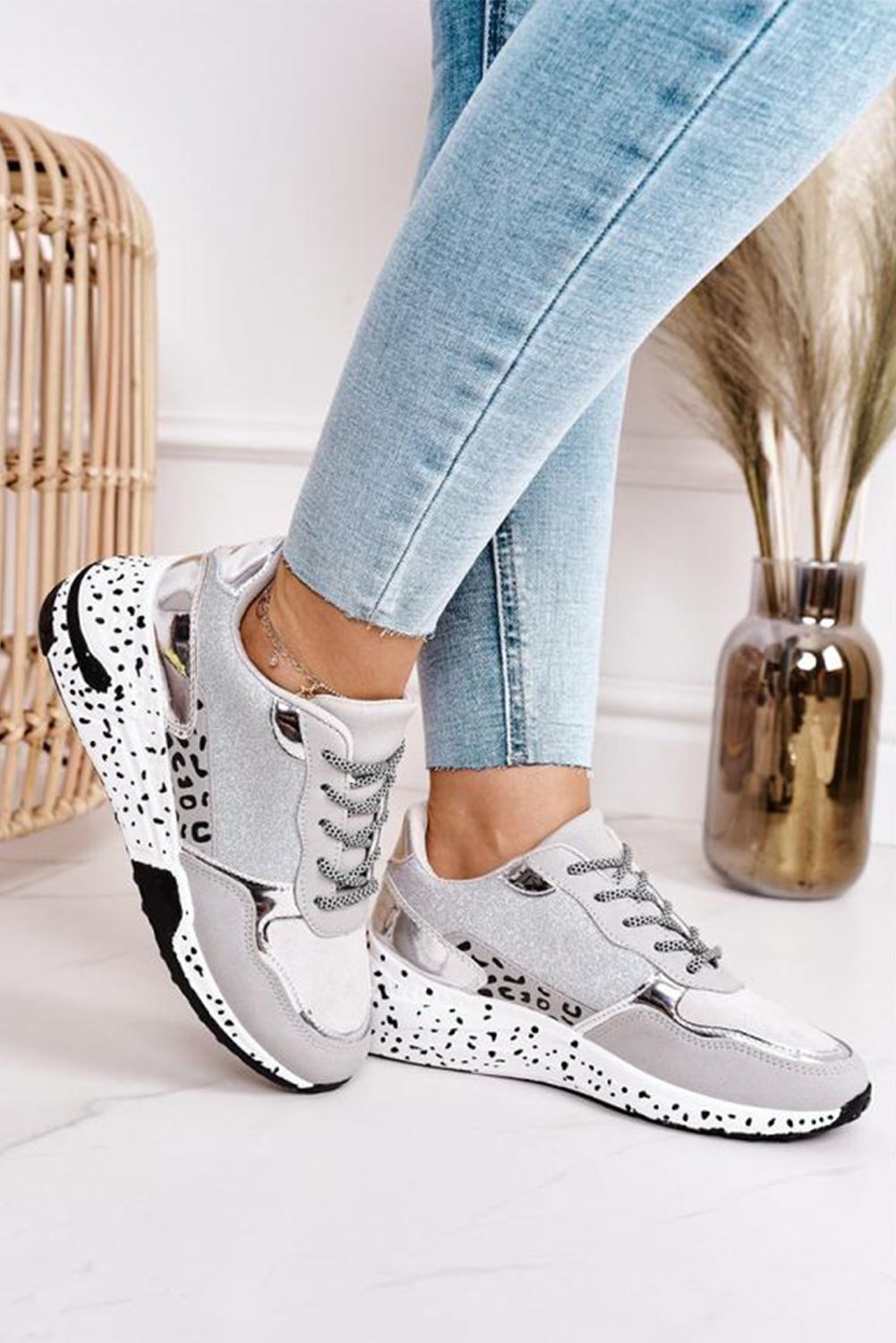 Women's Shoes - Leopard Print Lace-up Sneakers
