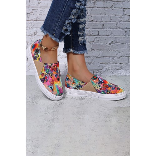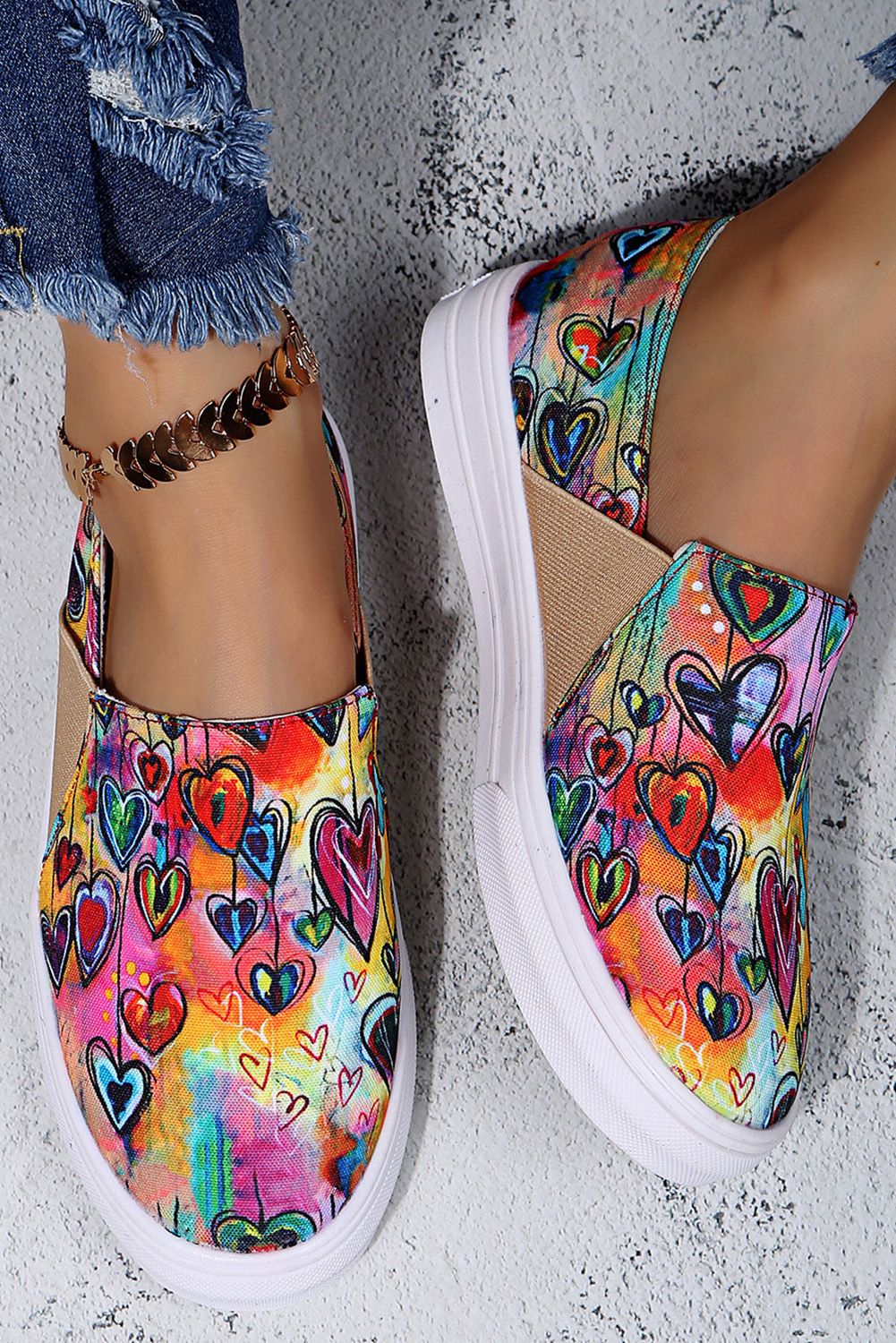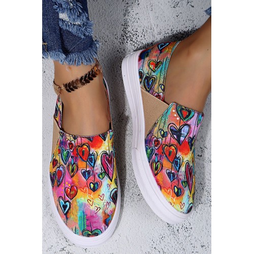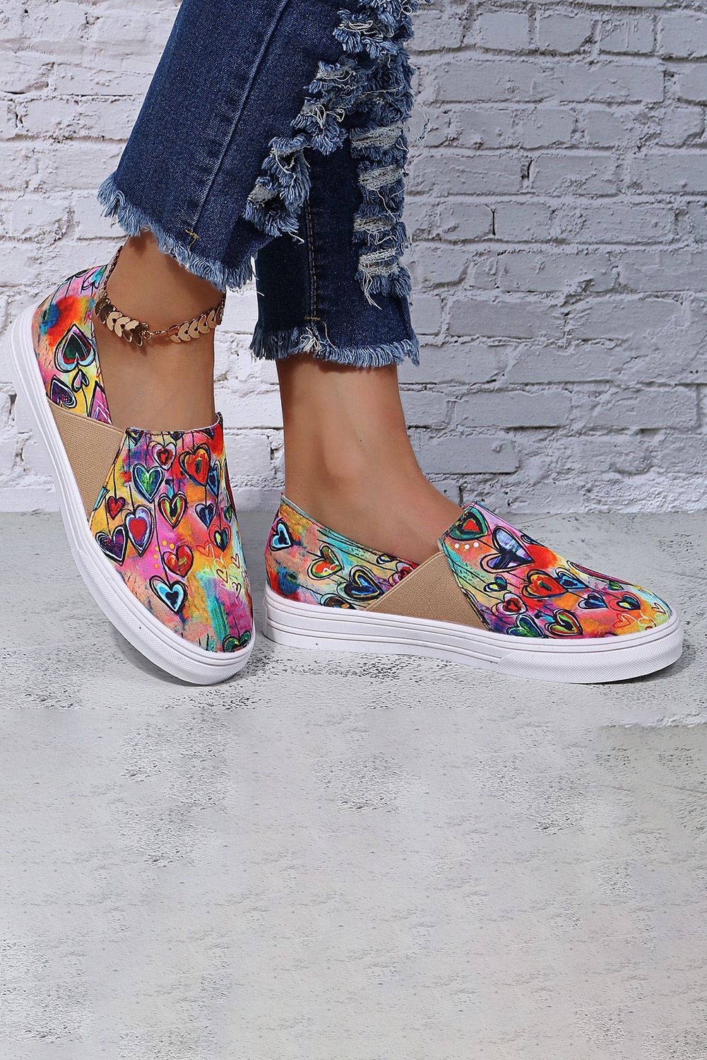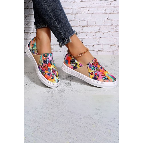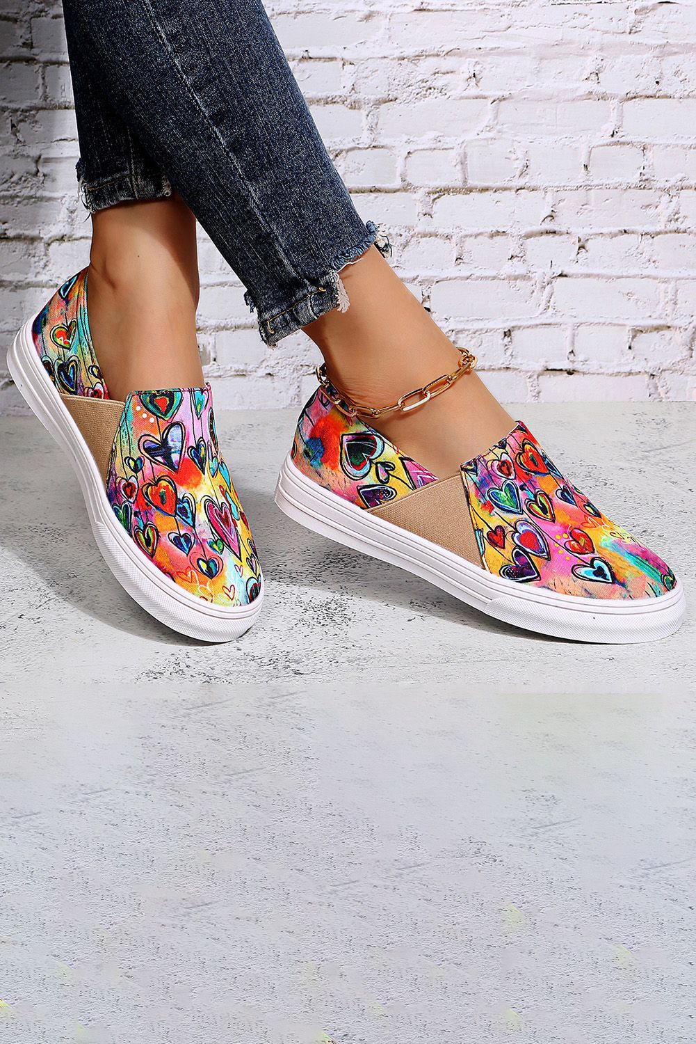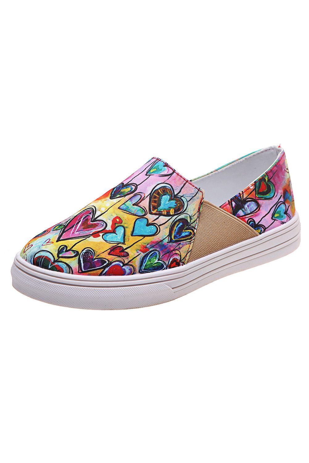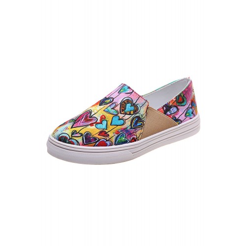 Women's Shoes - Red Multicolor Love Heart Slip-on Flat Shoes